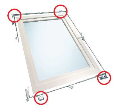 - Sicherheits-Beschlag mit 4 Sicherheitspunkten (ab einer Flügelbreite von 491 mm)